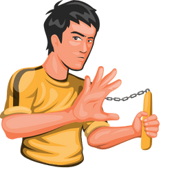 Si esto no era posible –que normalmente no lo era, porque se suponía algo pasajero o simplemente no había dinero para «kung-fus», mientras duraba la moda o la ventolera o lo que fuera, más de uno se construía sus propios “luchacos” –los llamábamos- Consistia en dos trozos de palo de escoba del mismo tamaño, ambos con una alcayata en uno de los extremos, y unidos por una cadena. Esta era la versión casera, réplica de los originales nuncha-kus. Para Bruce Lee, era un arma imprescindible, así como para cualquier discípulo aventajado del maestro.